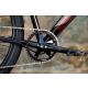 6061 aluminium, QR dropouts, rek/spatbord/triple cage mounts, interne kabelgeleiding |
